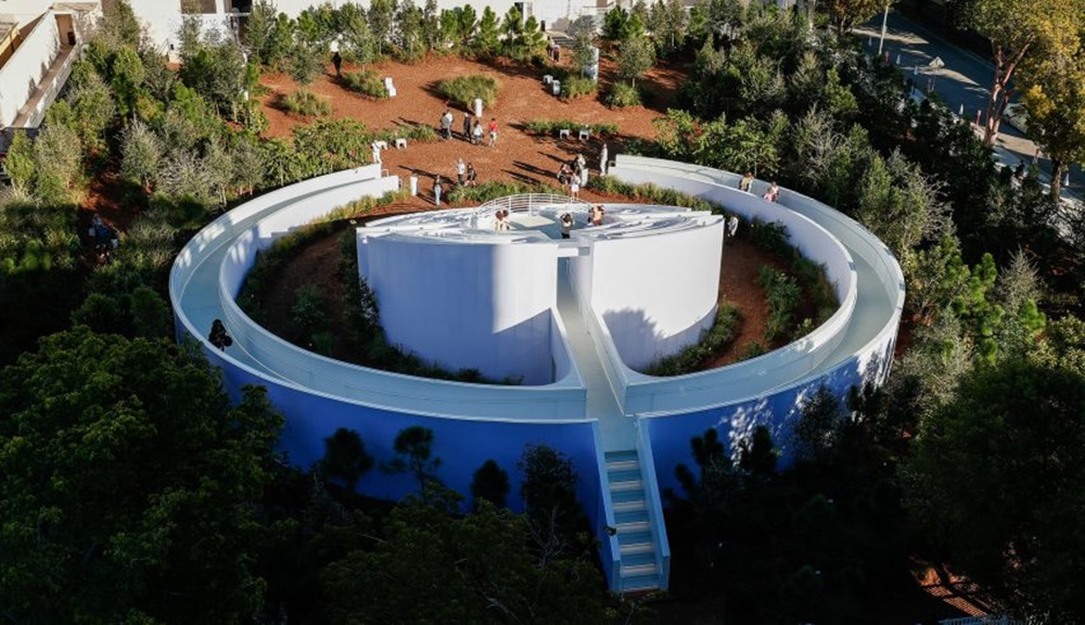이 구조물은 영국의 디자이너 에스 데블린(Es Devlin)이 설계한 것입니다. 이 구조물의 이름은 '파이브에코즈(Five Echoes)인데요. 파이브에코즈는 마이애미의 디자인 디스트릭트에 위치하고 있죠. 이 구조물의 기본적인 골격은 '원형 미로'인데요. 오르막길 복도가 양쪽으로 나있고, 이 오르막 복도를 다 올라가면 중앙에 우뚝 솟은 플랫폼으로 갈 수 있습니다. 그리고 이 플랫폼은 미로의 형태를 하고 있는 것이죠. 그리고 이 미로의 주변으로는 크고 작은 나무 2천 그루 이상이 심어져 있습니다.