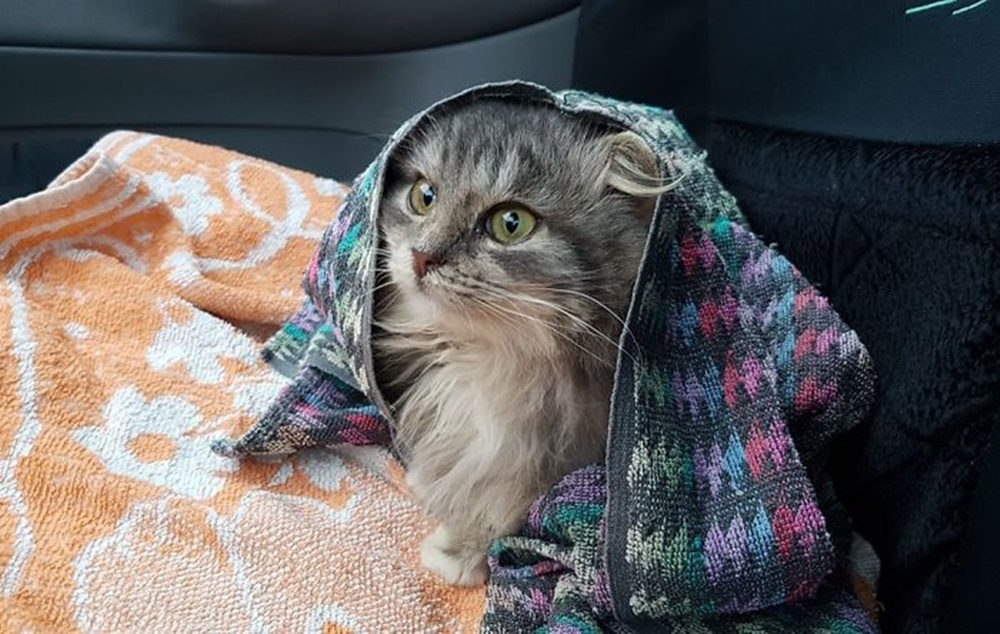 고양이는 거의 눈 뭉치가 되어가고 있었습니다. 움직일 수 없었고, 몸은 눈으로 뒤덮였죠. 슬라바가 다가가도 도망칠 수 없는 상태였습니다. 슬라바는 차에 있던 수건을 꺼냈고, 이 수건에 고양이를 쌌습니다. 그리고 고양이의 언 몸이 빨리 녹을 수 있도록 차 히터를 틀었습니다.