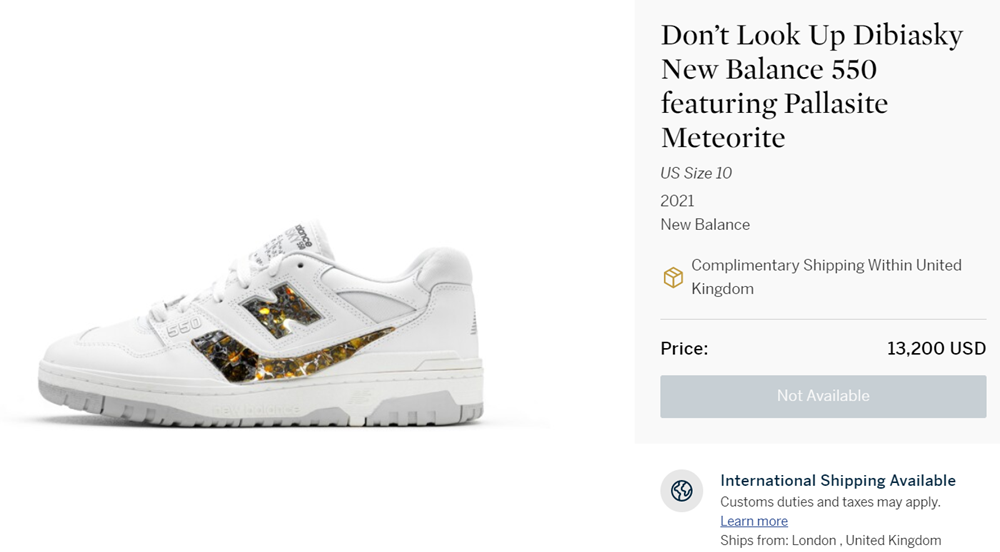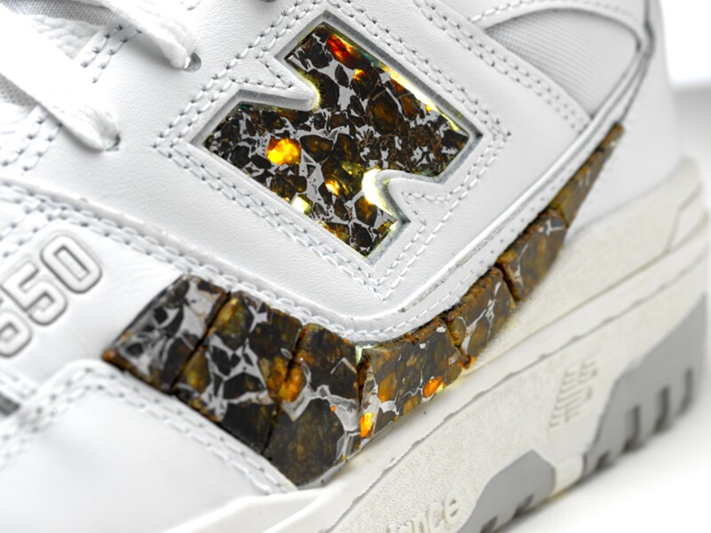 이 운동화가 그렇게나 비싼 이유는 무엇일까요? 바로 매우 비싼 재료로 운동화를 장식했기 때문입니다. 커스텀에 사용된 운동화는 뉴발란스 550입니다. 뉴발란스 550은 심플한 디자인에 레트로한 매력이 가득한데요. 뉴발란스 550의 옆쪽에 있는 N로고와 사이드 패널에 '운석'을 넣어 장식했다고 하네요.