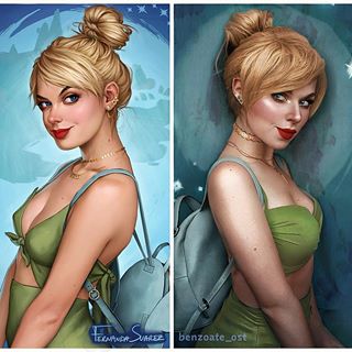 한 인스타그래머가 그린 사진을 똑같이 코스프레한 경우도 있었습니다. Fernanda Suarez라는 이름을 가진 아티스트가 그린 그림을 코스프레로 똑같이 재현해냈습니다. 수아레스가 그린 '모던 팅커벨'로 변신했습니다.