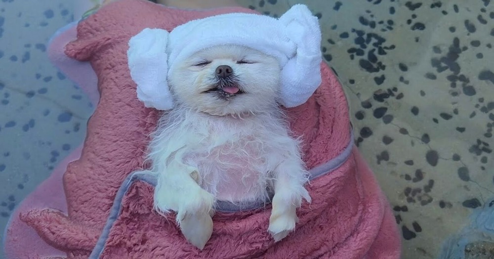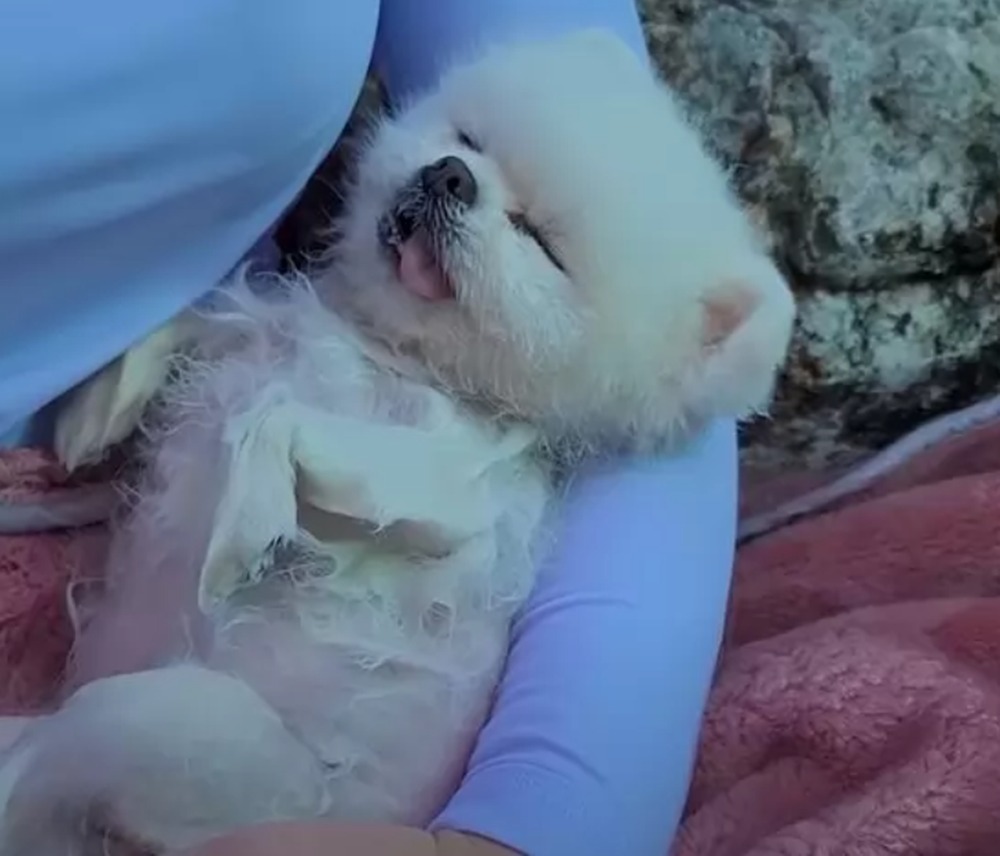 퐁키는 이 순간을 만끽하고 있으며 온천을 100% 즐기고 있는 것처럼 보이는데요. 결국 주인의 품에 안겨 스르륵 잠이 들어 버렸네요. 온천의 매력에 빠져버린 것이죠!