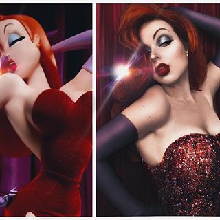 로버트 저메키스 감독의 1998년 작 영화 '누가 로저래빗을 모함했나' 속 애니메이션 캐릭터인 '제시카 래빗'으로 분했습니다. 과장된 글래머인 제시카 래빗은 영화의 주인공 로저 래빗의 아내이자 1940년대 할리우드 여배우들이 가진 특징을 한데 모은 캐릭터입니다. 표정과 사진까지 완벽하게 재현했네요.
