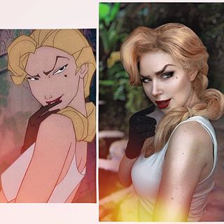 디즈니 장편 애니메이션 영화인 <아틀란티스-잃어버린 제국>의 섹시한 악역 '헬가 싱클레어'로 분장했습니다. 눈썹과 눈 밑 점의 디테일까지 놓치지 않았네요.