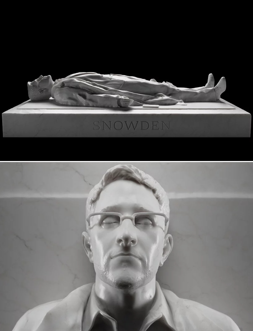 에드워드 스노든입니다. 다른 인물들과는 다르게 눈을 감고 죽어있는 모습으로 나옵니다. 이 조각상의 제목은 'The Collapse of the Resistance(저항의 붕괴)'입니다. 스노든은 미 중앙정보국(CIA)과 국가안보국(NSA)에서 일했던 컴퓨터 기술자로 2013년 미국 내 통화감찰 기록과 감시 프로그램 등의 기밀자 폭로하여 결국 러시아로 망명한 인물입니다.