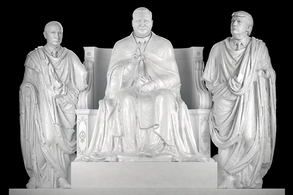 'The Police State(경찰국가)'라는 이름의 조각상입니다. 이 인물들이 누구인지는 금방 알아차릴 수 있을 것입니다. 이 셋 중 시진핑을 중간에 앉혀두었는데요. 작가의 의도는 무엇이라고 생각하시나요?