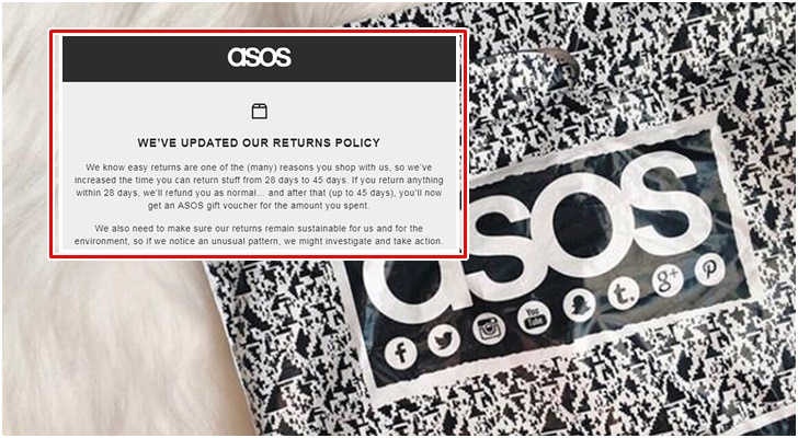 이 논란은 아소스의 '반품 정책'에까지 영향을 미쳤습니다. 아소스는 최근 반복적으로 반품을 하는 '블랙 컨슈머'를 차단하기 위해 이 사람들의 계정을 차단할 수도 있다고 밝혔는데, 네티즌들은 이에 정책에 대해 '위선적'이라고 비난했습니다. 그 옷이 실제로 어떻게 생겼는지 제대로 보여주지도 않고 자주 반품하는 사람들의 책임은 묻는다는 것이 아이러니하다는 주장이죠.