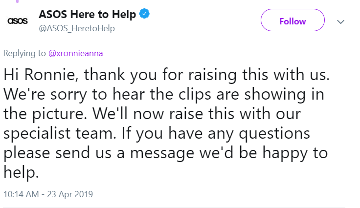 논란은 이때부터 시작되었습니다. 집게를 집어 옷의 라인을 보정하는 것은 명백하게 '소비자들을 기만'하는 행위라고 생각했기 때문입니다. 아소스의 단순한 '사과'로 끝나선 안된다는 의견이 지배적이었습니다. "집게 사용하는 걸 멈춰주세요. 제품이 도착했을 때 사진과 너무 다르잖아요. 이건 오해의 소지가 있어요." "이 원피스의 진짜 핏을 보여주세요"라고 말하며 집게 사용을 중지해달라는 요청과, "드레스 사면 집게도 주나요?" "지금까지 옷 사면 화면이랑 너무 다르던데 이유를 알겠군." 등의 의견도 있었습니다.