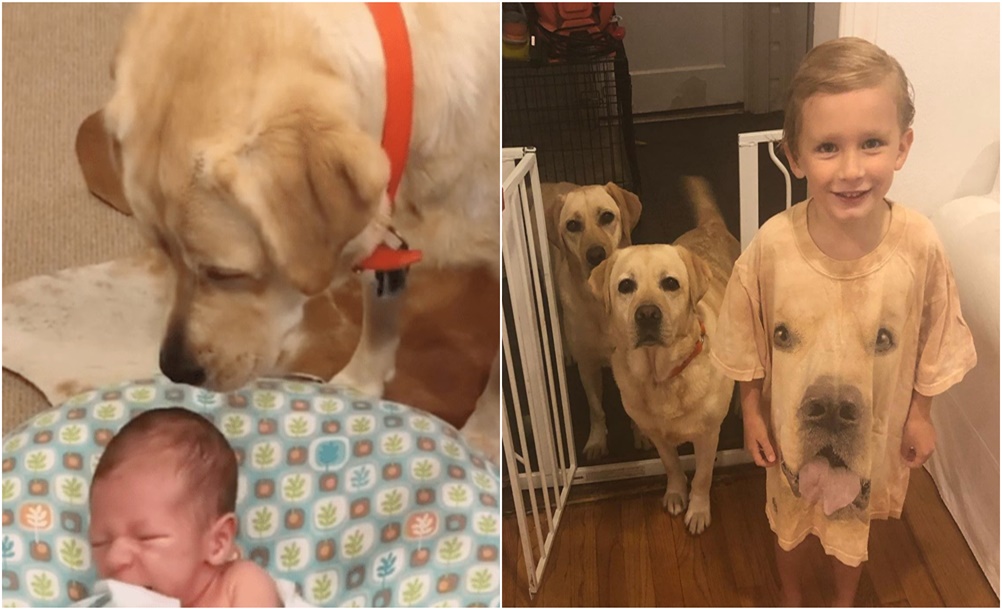 이를 본 피넛은 아이를 지긋이 바라보며 자신이 해줄 일이 없는지 찾고 있는 것 같습니다. 이후 래브라도는 코를 킁킁대며 아이가 어디가 불편한지 찾았고, 아기의 한쪽 팔을 핥아주며 아기를 달래고 있습니다. 이에 아기는 곧 평온을 되찾게 되었네요.